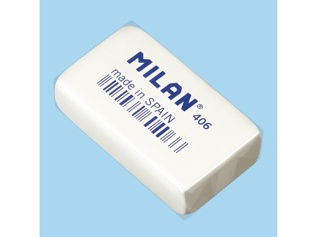 Pružná guma MILAN 406 je ze syntetického kaučuku. Může být použita na vymazání široké škály tahů grafitové tužky ze všech druhů papíru.Doplňkové parametry
