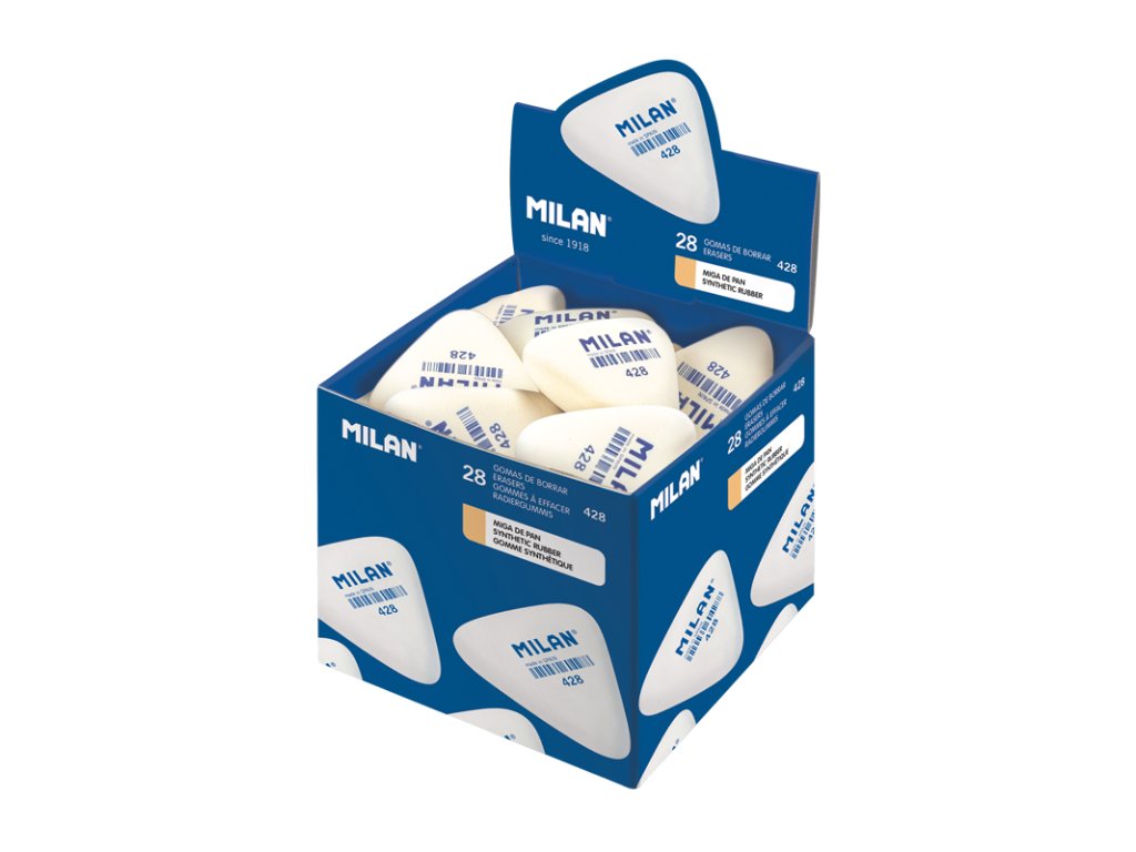 Silná trojúhelníková guma MILAN 428 je z měkké syntetické gumy. Může být použita na vymazání široké škály tahů grafitové tužky ze všech druhů papíru. Barva: bílá.Doplňkové parametry