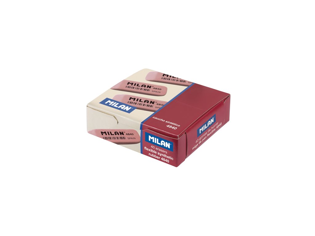 Pružná zkosená guma MILAN 4840 je vyrobena ze syntetické gumy. Může být použita na mazání grafitových tahů tužkou ze všech druhů papíru. Barva: růžová.Doplňkové parametry