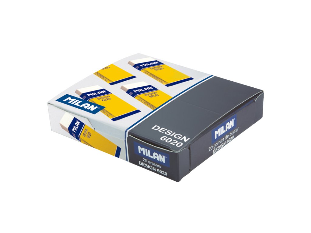 Bílá plastová guma MILAN DESIGN 6020 na mazání tahů tužky z libovolného povrchu. Rozměr 1 gumy je 61 x 21 x 11 mm. Balení 20 ks.Doplňkové parametry