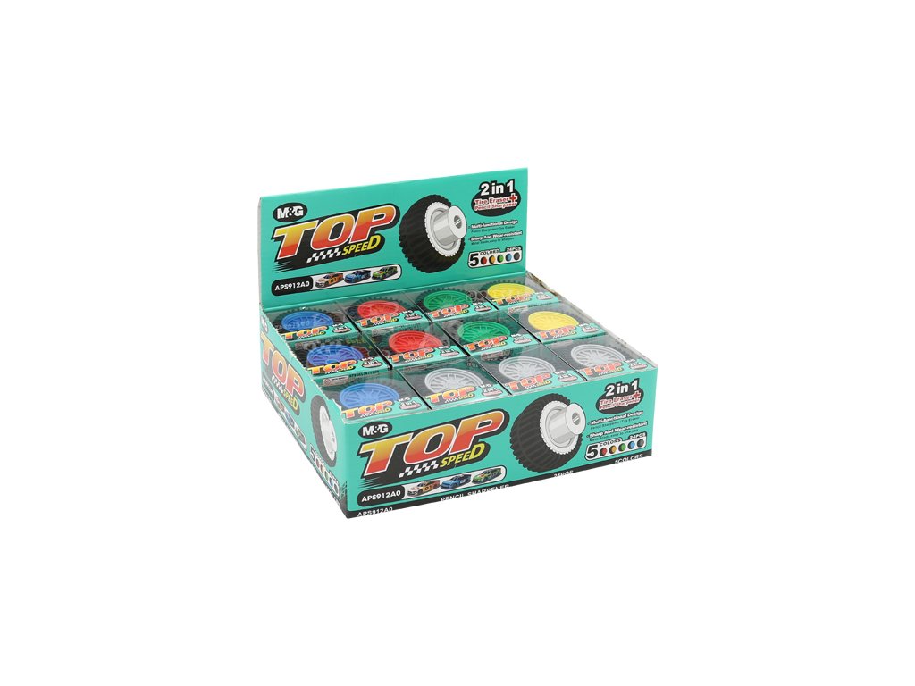 Top Speed ořezávátko + guma ve tvaru disku s pneumatikou.