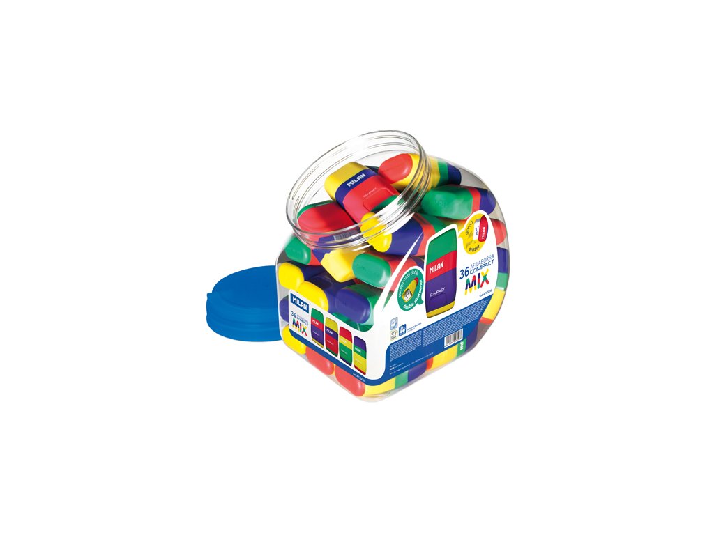 Kombinovaná guma a ořezávátko MILAN Capusle Mix se zásobníkem v jednom. Guma je schovaná pod víkem. Ostrá, odolná uhlíková čepel struhadla, se systémem který zabraňuje oddělení čepele od těla struhadla. Ideální pro školáky a studenty. Guma se dá dodatečně vyměnit za gumu MILAN 430. Milan Compact má speciální pogumovaný povrch, který si zamilujete.Doplňkové parametry