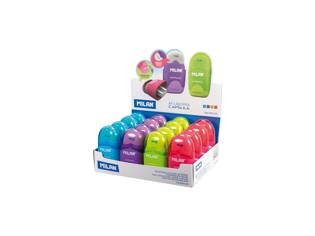 Kombinace gumy a struhadla. Design CAPSULE. Ořezávátko na tužky má ostré a odolné ocelové ostří, díky čemuž je ideální pro všechny druhy tužek. Bezpečnostní systém čepele, který zabraňuje odtržení čepele od těla odstřihu.Doplňkové parametry