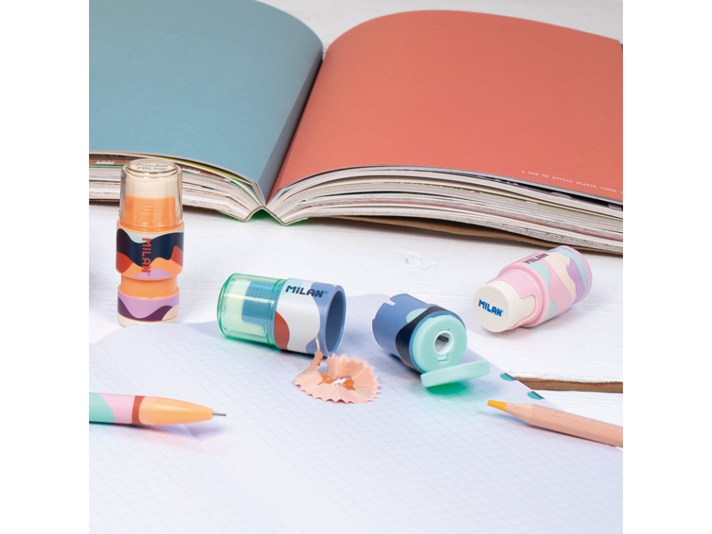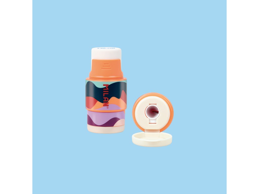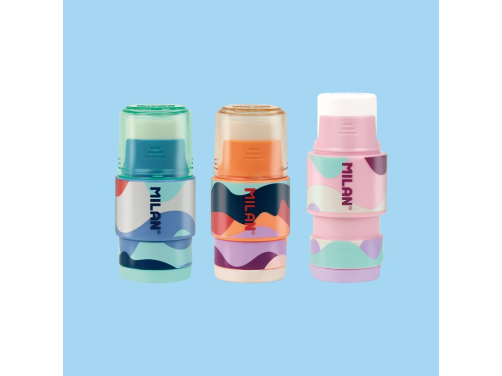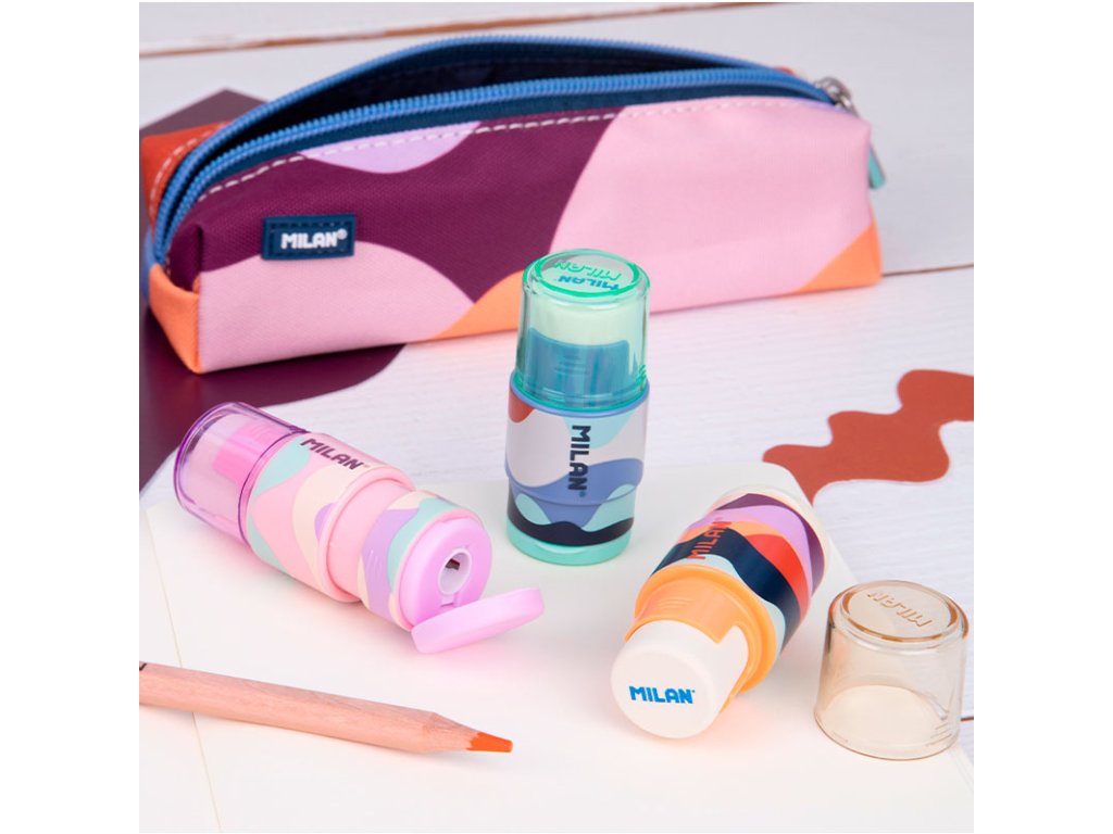 Kombinace měkké syntetické pryže a struhadla. Struhadlo na tužky s nástavcem má ostré a odolné ocelové ostří, díky čemuž je ideální pro všechny druhy tužek. Bezpečnostní systém čepele, který zabraňuje odtržení čepele od těla ořezávače. Tři různé barevné kombinace: oranžová, fialová a modrá.Doplňkové parametry