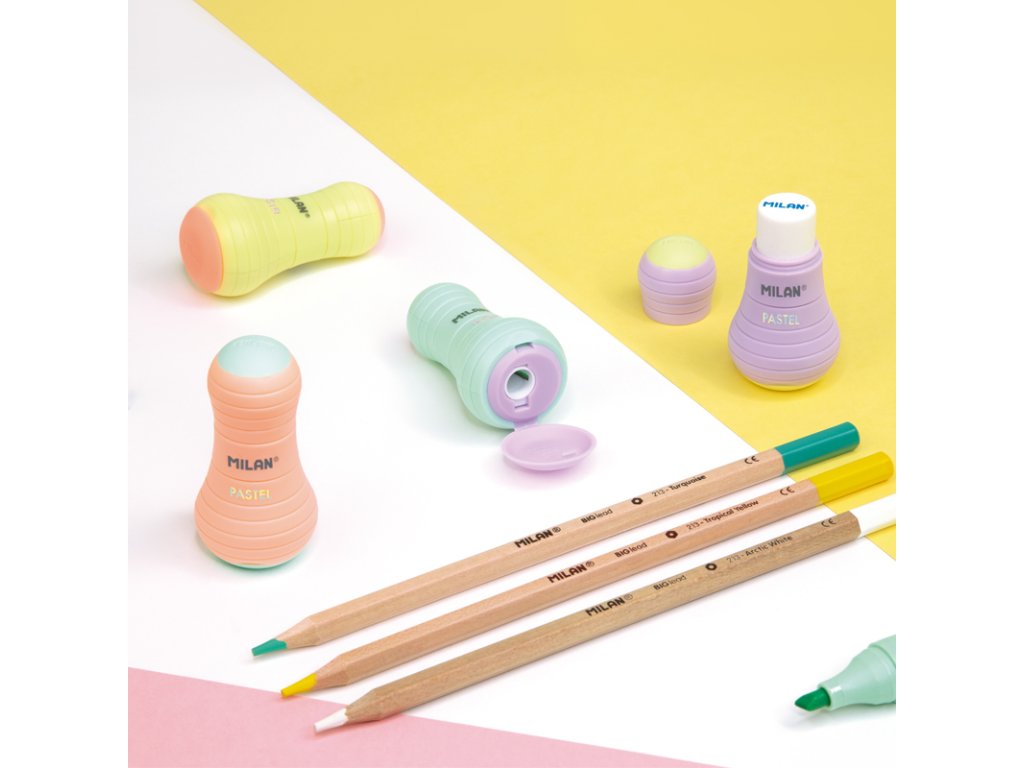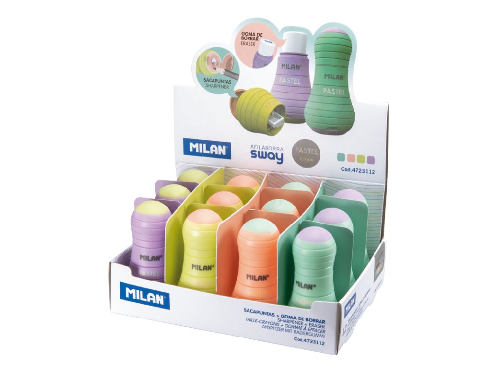 Guma se struhadlem MILAN, v oblíbeném designu Sway Pastel. Z jedné strany se nachází kulatá guma, z druhé - širší strany - struhadlo s kvalitní čepelí z uhlíkové oceli. Vybaveno bezpečnostním systémem proti oddělení čepele od struhadla. Vhodné pro širokou škálu grafitových tužek. V atraktivních barevných kombinacích.Doplňkové parametry