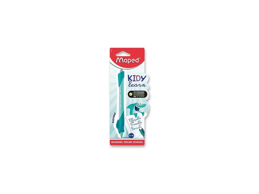 Gumovací pero Maped Kidy Learn Magic Shark v provedení žraloka s inkoustem, který lze snadno vymazat třením. Pero je navrženo pro podporu správného úchopu, má měkkou ergonomickou úchopovou zónu. Pero je znovu plnitelné a kompatibilní se standardními gumovacími náplněmi. Je vhodné pro praváky i leváky a pro děti od 6 let. Šíře hrotu 0,7 mm. - ergonomická úchopová zóna- otočný mechanismus- modrá barva náplněDoplňkové parametry