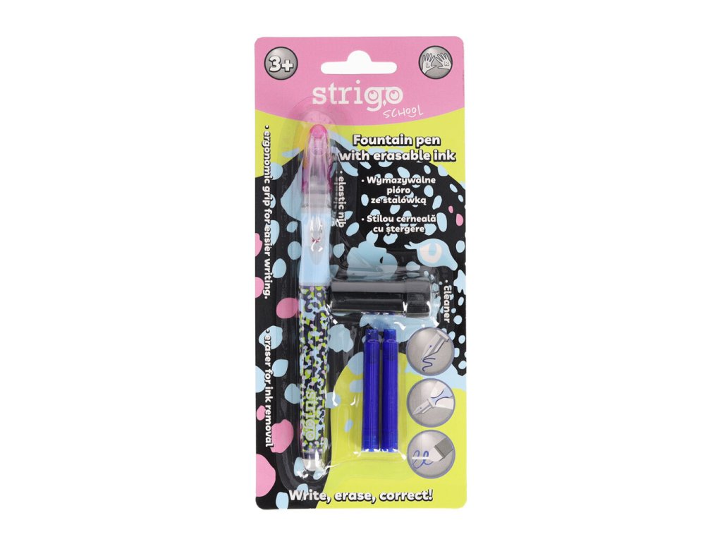 Plnící pero na bombičky, které lze gumovat. Pero má ergonomický úchop. Zabalené na blistru včetně 2 ks bombiček a čistítka hrotu. Vhodné pro praváky i leváky.Doplňkové parametry