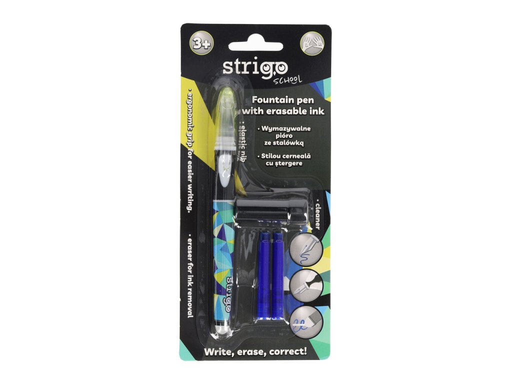 Plnící pero na bombičky, které lze gumovat. Pero má ergonomický úchop. Zabalené na blistru včetně 2 ks bombiček a čistítka hrotu. Vhodné pro praváky i leváky.Doplňkové parametry