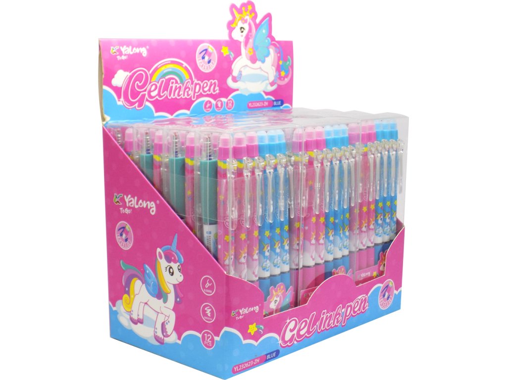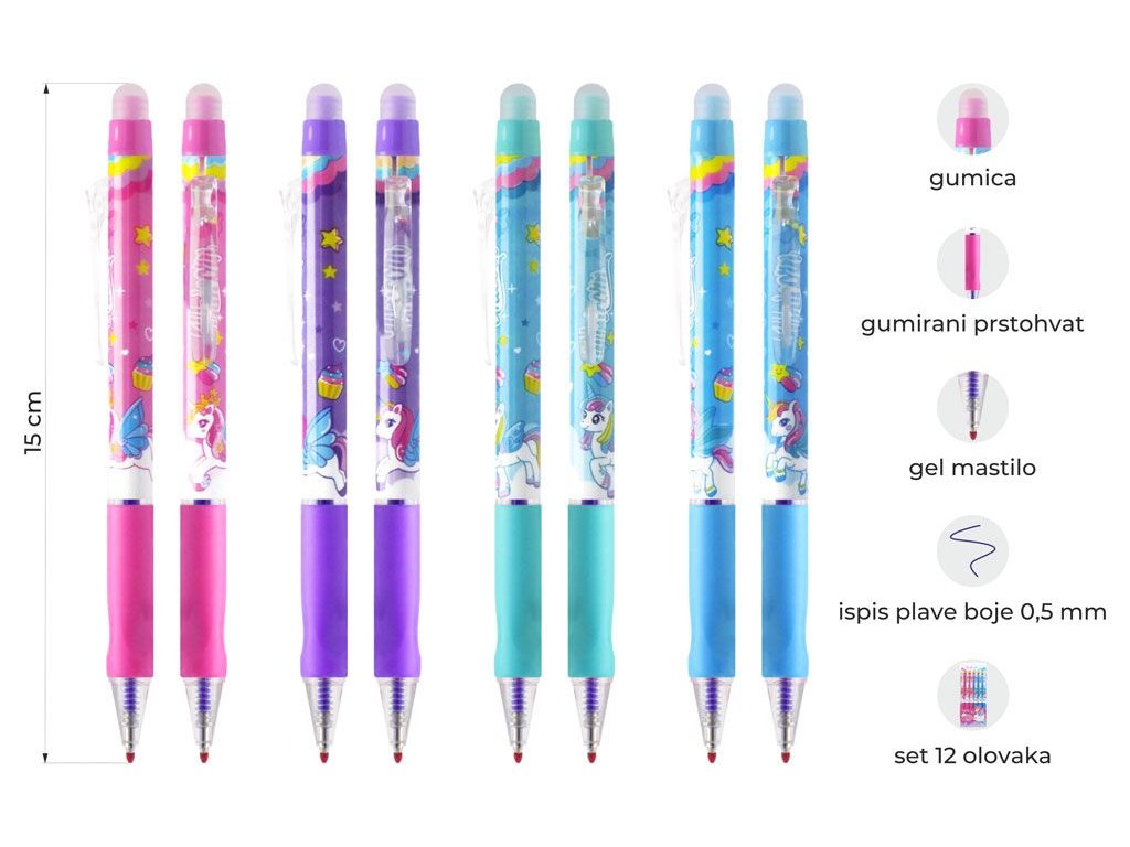 Gumovací pero Jednorožec Barva inkoustu modrá Tloušťka hrotu 0,5 mm Mix barev Zasíláme dle skladových možností Cena za 1 peroDoplňkové parametry