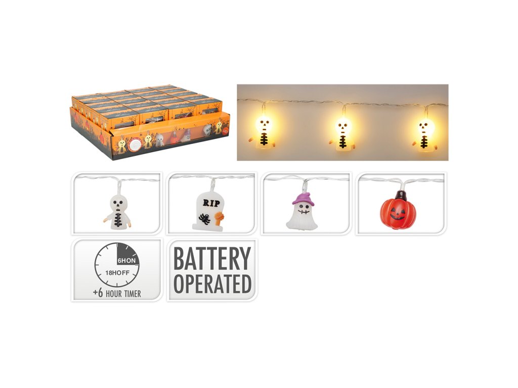 Halloweenský světelný řetěz 10x LED, délka 135 cm