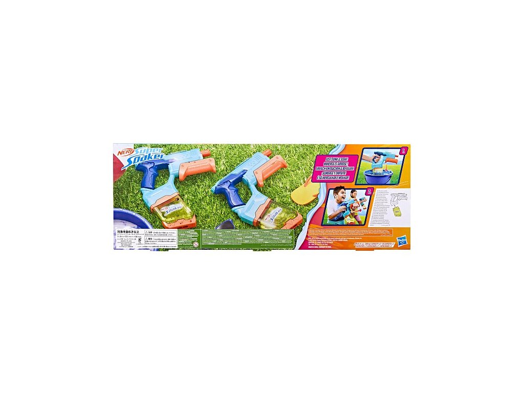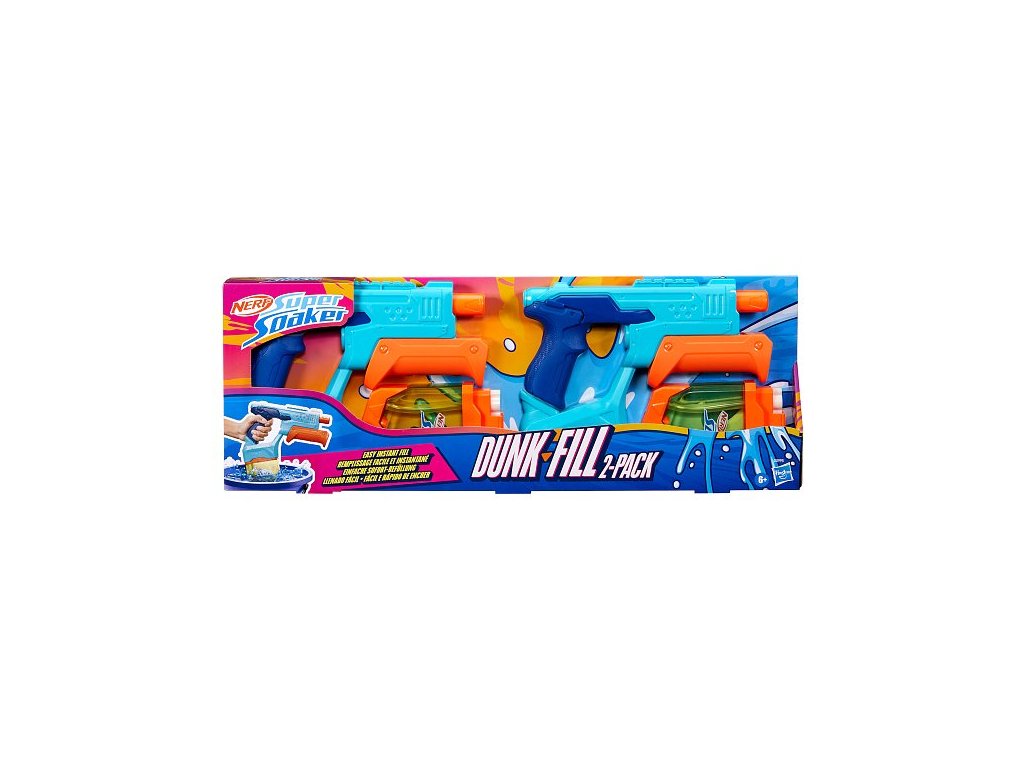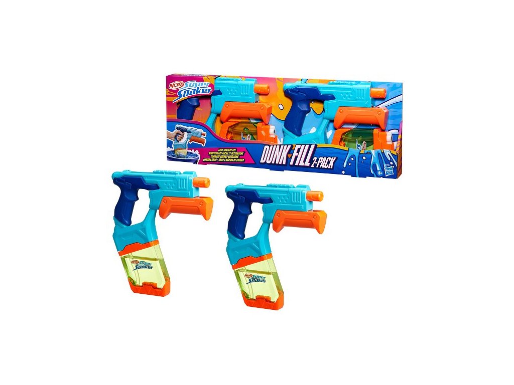 Nerf Super Soaker Dunk-Fill 2 – Pack obsahuje dva vodní blastery, které umožňují rychlé a jednoduché plnění, takže můžete být během okamžiku připraveni na vodní dobrodružství. Díky inovativní konstrukci nádržky se voda napustí prakticky okamžitě – stačí jednoduše ponořit blaster do vody a sledovat, jak se ihned napustí. Transparentní nádrž má kapacitu až 300 ml, což zajišťuje dlouhotrvající zábavu. Pomocí pumpovací rukojeti pak snadno aktivujete silný proud vody. Vodní blastery Nerf Super Soaker jsou ideální venkovní hračky pro děti, které skvěle oživí každou letní aktivitu. Jsou perfektním dárkem, který motivuje k pohybu a zábavě na čerstvém vzduchu, a to s pořádným šploucháním! Balení obsahuje dva blastery. Vyrobeno z kvalitního plastu. Baleno v krabičce. Rozměr balení: 22,4 x 61 x 4,4 cm. Věk: 6+Doplňkové parametry