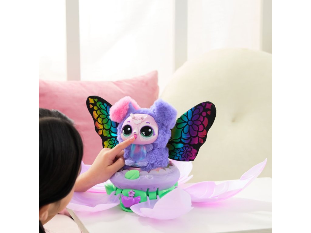 Zalévejte krásné poupě a po krátké chvíli vám vydá krásnou plyšovou housenku. O tu se musíte starat, hrát si s ní a hladit ji. Až bude připravena se zakuklit, zahraje melodii a tzkadla rozvítí duhovými barvami. Vraťte ji do květu, který se sám zavře, aby po chvilce vydal krásného plyšového motýla ve zcel jiné barvě, než byla housenky. Motýl je interativní a dá se s ním hrát několik her. Tato proměna se dá opakovat znovu a znovu.Doplňkové parametry