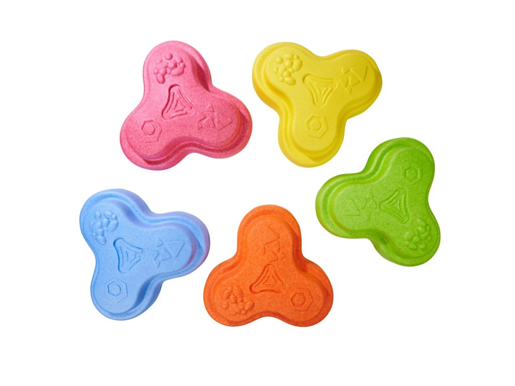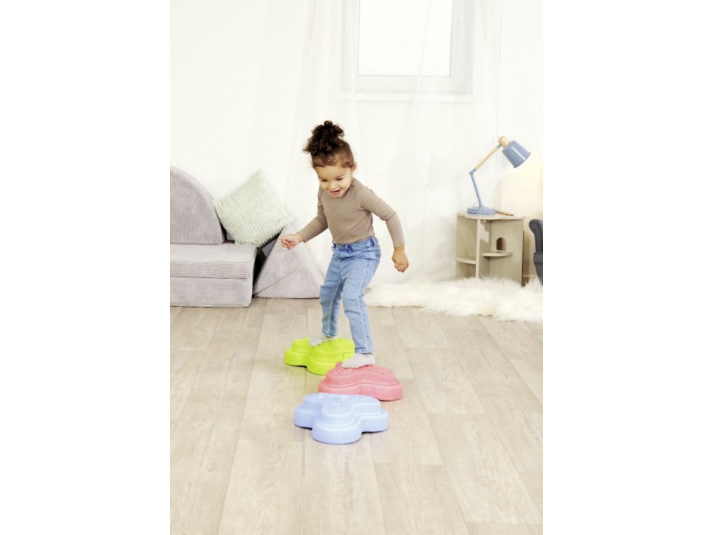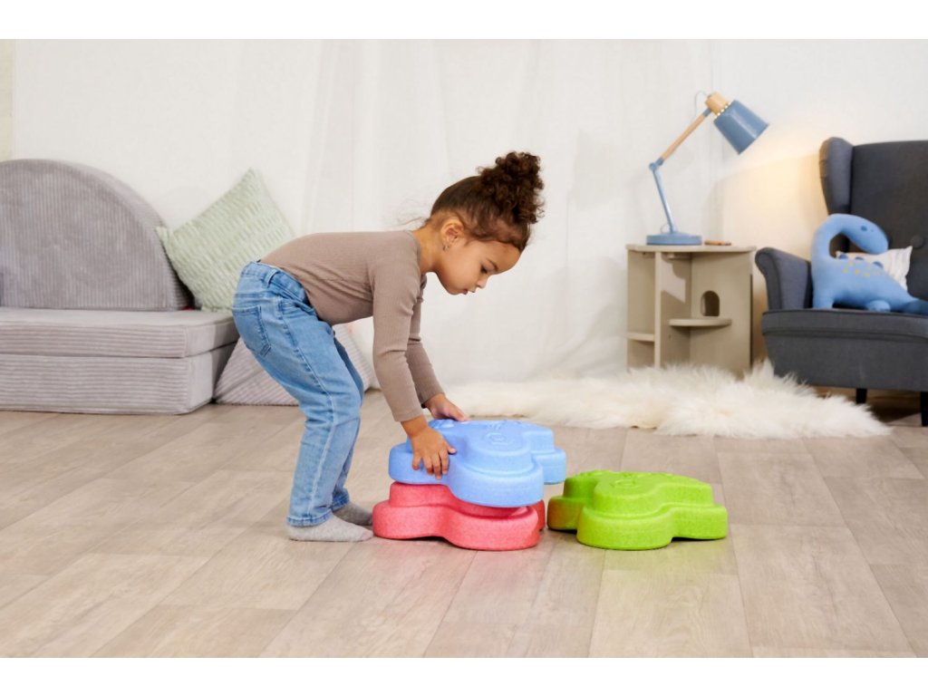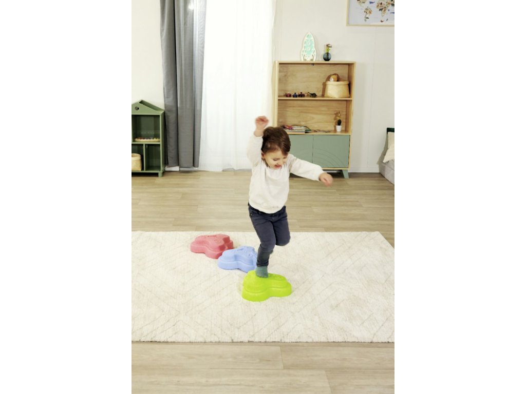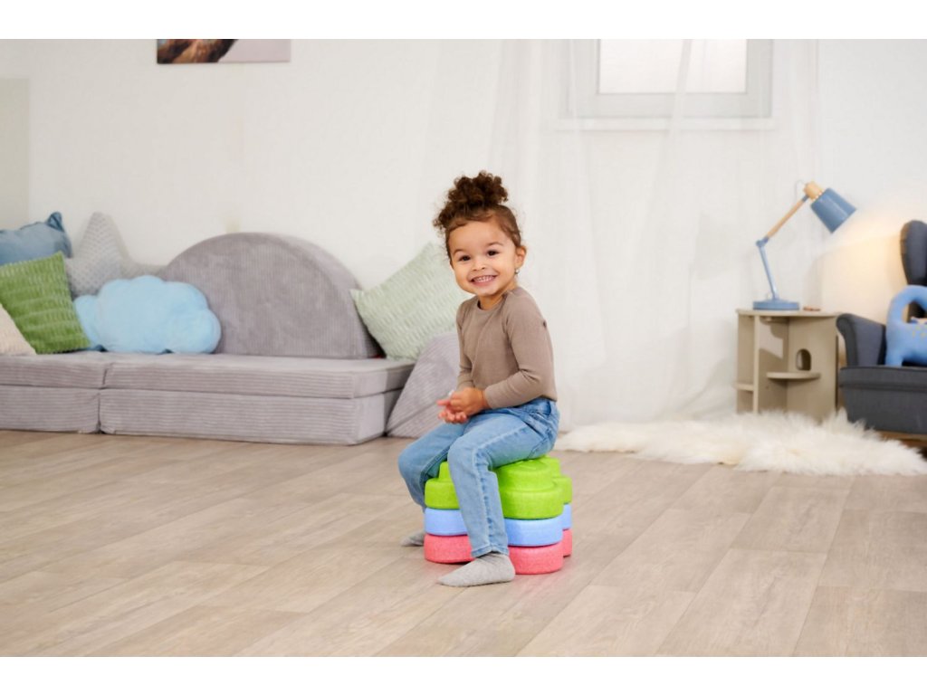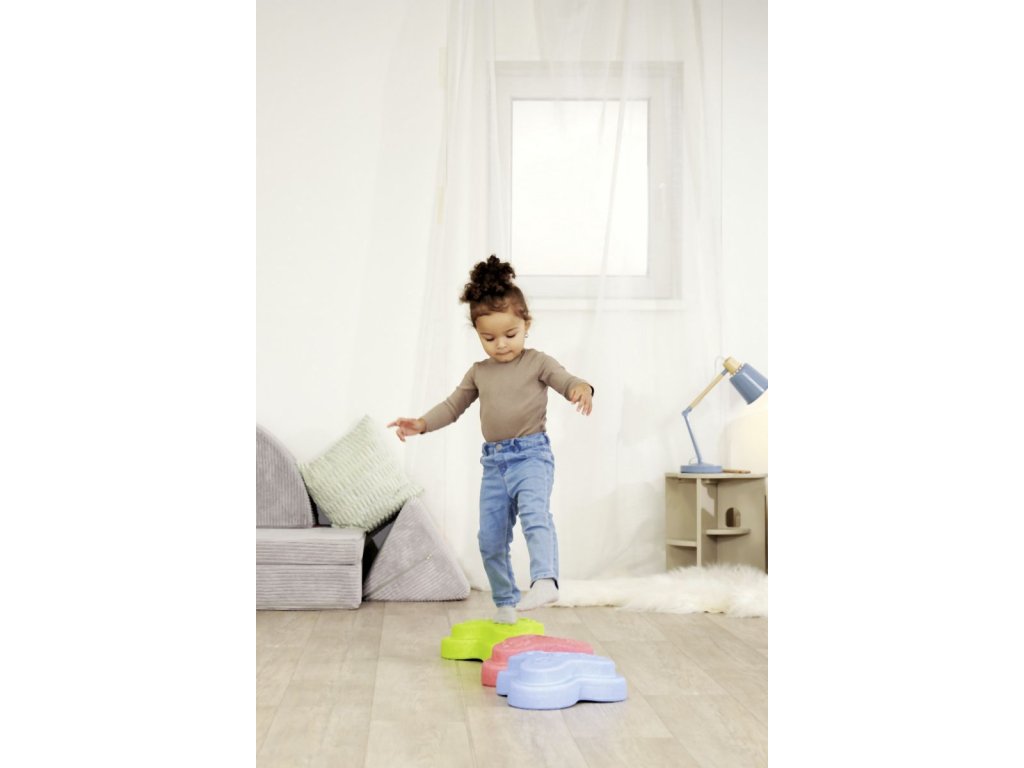 Sada 5 balančních nášlapných kamenů pro děti- v červené, modré, zelené, oranžové a žluté barvě - Měkké kostky se strukturovaným povrchem pro hmatovou hru a stavění. Tyto barevné hrací kameny byly speciálně vyvinuty pro batolata od 12 měsíců a hravou formou podporují smyslové vnímání, motorický vývoj a smysl pro rovnováhu. Vyrobeno z EPP: 90 % vzduchu, 10 % materiálu. Obzvláště robustní a extrémně lehké. Tři různé povrchové textury, kameny unesou zatížení až 120 kg. Díky svému materiálu jsou Heppy Rocks teplejší než jiné plastové hračky, snadno se čistí, jsou odolné vůči slinám a potu a ideální pro použití uvnitř i venku.Doplňkové parametry