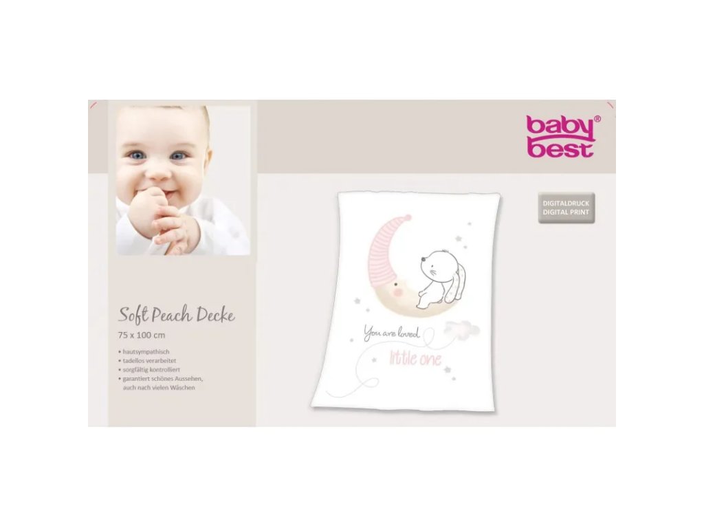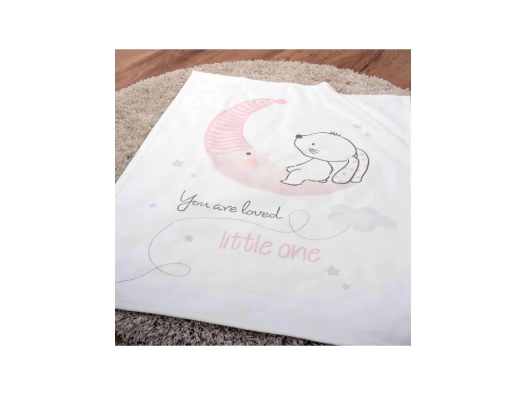 Rozkošná dětská deka s malým zajíčkem je vhodná do postýlky či do kočárku a díky maximálně příjemné supersoft flísové úpravě se stane oblíbenou dekou jak pro vaše děťátko tak i pro vás. Toto zboží máme skladem, připraveno k odeslání.• rozměr 75 x 100cm