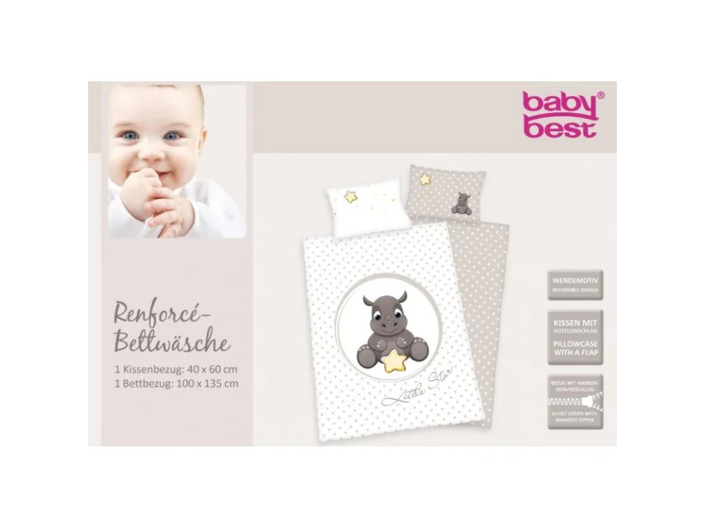 HERDING Dětské bavlněné povlečení do postýlky MALÝ NOSOROŽEC, 100/135+40/60