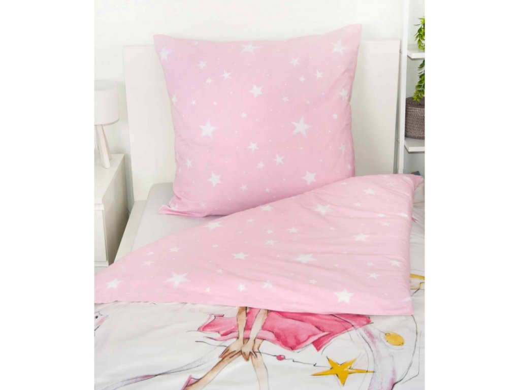Špičkové povlečení s romantickým designem potěší všechny malé víly. Povlečení má oboustranný potisk jak je vidět na obrázku. Díky technologii renforcé je bavlna mnohem pevnější, ale zároveň hebčí a měkčí. Lépe absorbuje tělesnou vlhkost a dokáže regulovat teplotní rozdíly, takže vám poskytne maximální komfort.