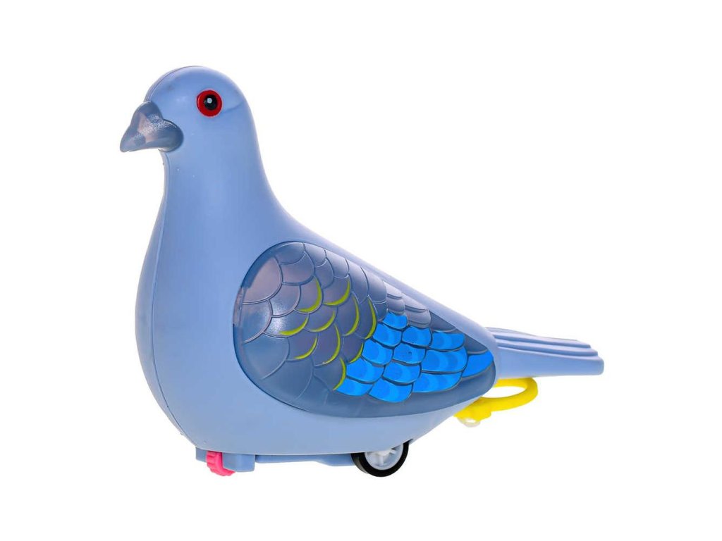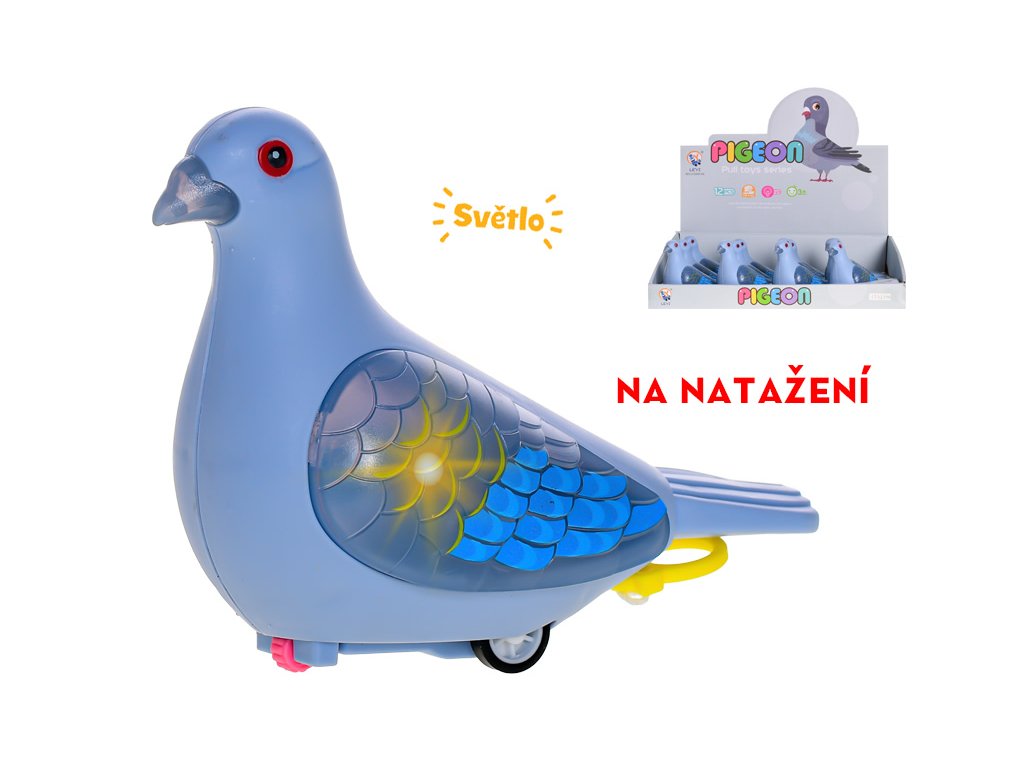 Holub 14cm ptáček jezdící na baterie na natažení se světlem