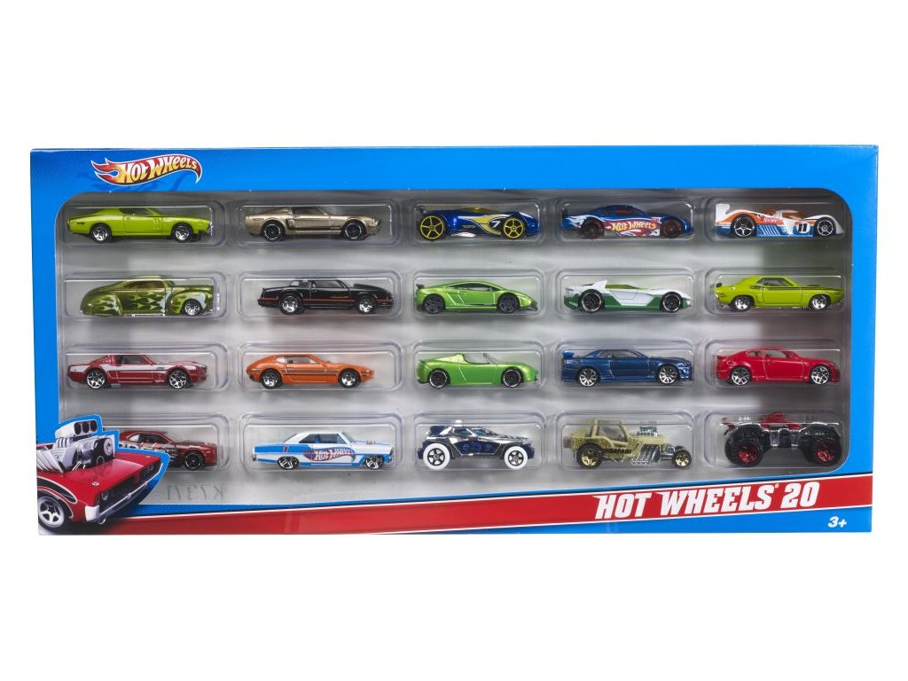 Balení dvaceti angličáků Hot Wheels® přináší plný kufr cool aut v měřítku 1:64. Průhledné balení ukazuje celou sadu! Sběratelé, fanoušci aut i děti jsou ohromeni výběrem modelů s klasickými i žhavými designy, které si mohou vystavit ve své sbírce, hrát si s nimi nebo je zapojit do akce! Dvacet angličáků znamená dvacetkrát lepší závody a kaskadérské akce pro fanoušky Hot Wheels® všeho věku - od 3 do 93 let! Barvy a vzhled výrobku se mohou lišit.Doplňkové parametry