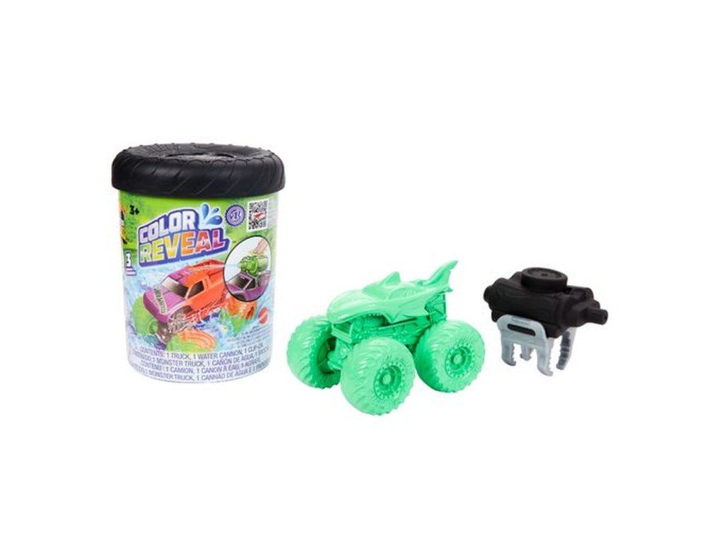 Balení Hot Wheels® Monster Trucks Color Reveal™ je nabité překvapením! Uvnitř sudu je jeden Monster Truck Hot Wheels® Color Shifters™ v měřítku 1:64, který je potažen speciální vrstvou Color Reveal™. Pro první odhalení naplň sud vodou, ponoř auto a kruž s ním, dokud voda nezmění barvu. Po vytáhnutí odhalíš design a dekorace svého Monster Trucku. Chceš znovu změnit jeho vzhled? Naplň sud ledovou vodou, ponoř auto a uvidíš, jak se barvy magicky mění! Vrať se zpět na původní barvu ponořením do teplé vody! Barvy a dekorace se mohou lišit.Doplňkové parametry