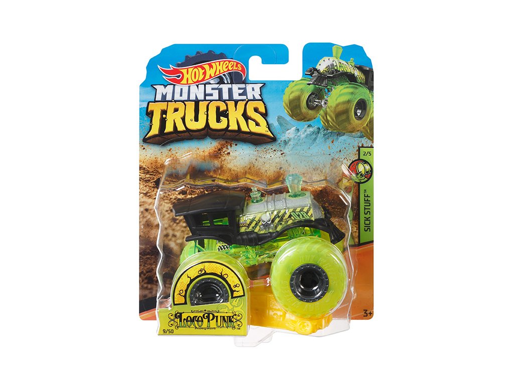Hot Wheels® Monster Trucks Kaskadérské kousky jsou pořádná auta v měřítku 1:64, tlakově litá z odolného kovu, a navíc otestovaná dětmi. Prozkoumej jejich nehorázně skvělou konstrukci podvozku a obří pneumatiky. Tahle kolekce kovových autíček nabízí úžasnou rozmanitost, která určitě potěší úplně všechny! Obří prémiová kola zdálky hlásají, že tohle jsou špičkové hračky, jednoduše originál Hot Wheels®. V každém balení najdeš kromě jednoho auta i jeho konkrétní statistiku včetně jména, typu vozu, výkonu, jedinečného způsobu, jakým bourá do protivníků, a motorizace - to vše zaručuje skvělou zábavu při vyprávění příběhů! Každý se prodává samostatně dle aktuální nabídky. Barvy a vzhled výrobku se mohou lišit.Doplňkové parametry