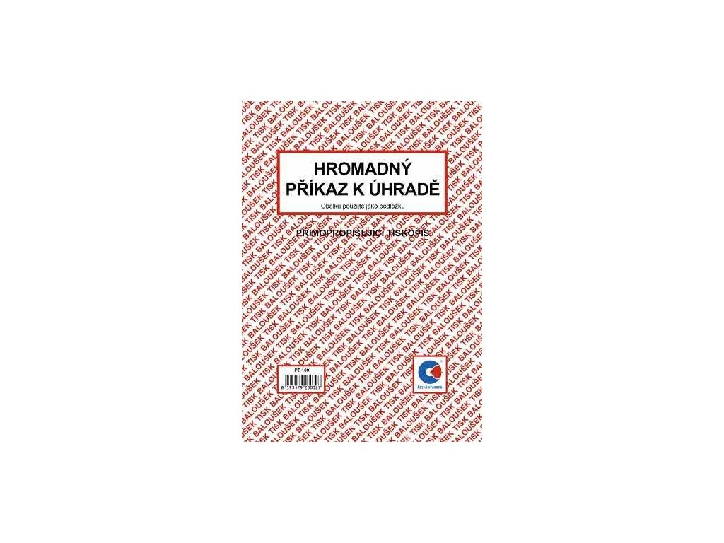 Hromadný příkaz k úhradě - tiskopis je vyroben ze samopropisujícího papíru. Tisk vnitřních listů je černou barvou.Doplňkové parametry