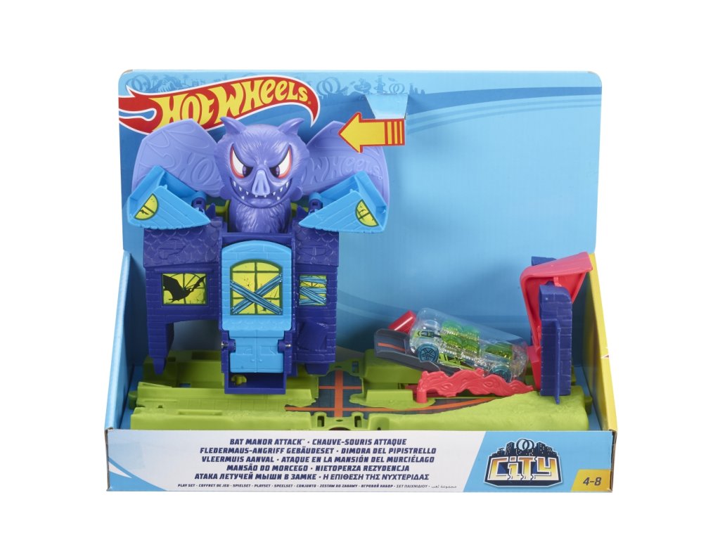 Město Hot Wheels® je uvězněno pod nadvládou příšer! Použij svá Hot Wheels® a vydej se na záchranu města! Připrav se na pořádné kaskadérské kousky, probojuj si cestu těmito tematickými herními sety a zachraň město Hot Wheels®. Všechny městské části z kolekce Hot Wheels® město lze jednoduše spojit dohromady díky novému spojovacímu systému, který je kompatibilní i se všemi tvými oranžodrahami. Vyber si svůj herní set nebo je sesbírej všechny a užij si spoustu zábavy plné dobrodružství a kaskadérských kousků.Doplňkové parametry