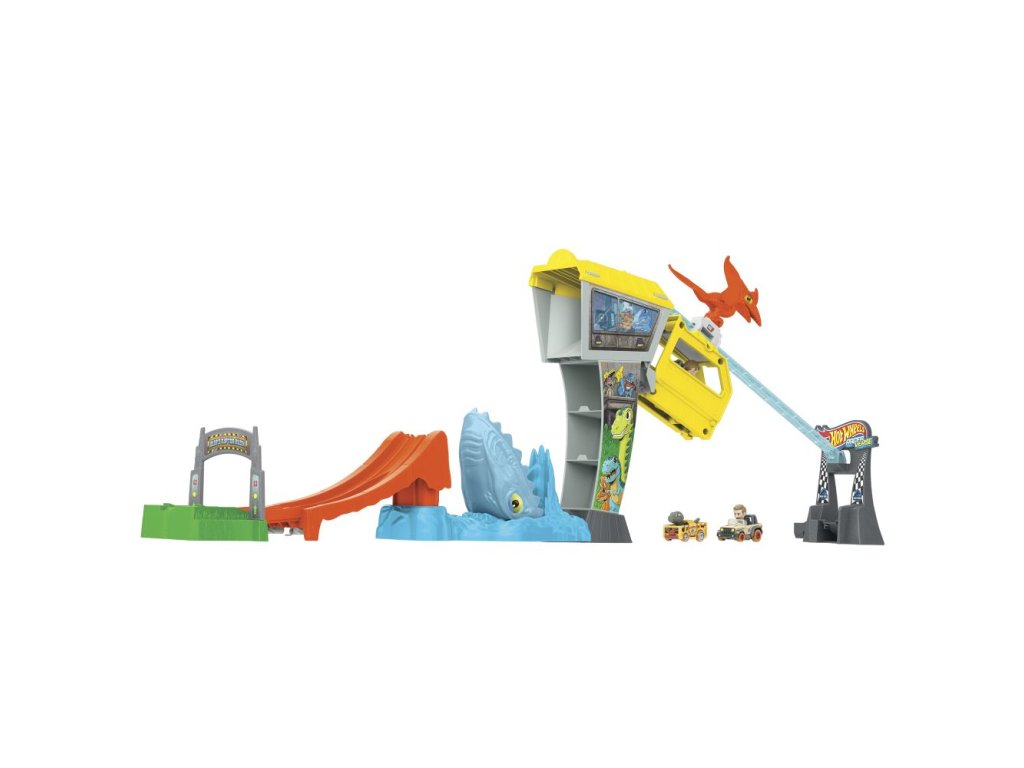 Závoďte, abyste unikli z ostrova Jurský svět v tomto setu dráhy Hot Wheels RacerVerse, který nabízí závodění a zipline v cíli. Set obsahuje závoďáky Blue Raptora a Owena s neoddělitelnými figurkami na sedadlech řidičů. Nejrychlejší auto se dostane na strážní věž a po zipline do bezpečí, zatímco jeho soupeř spadne do otevřené tlamy čekajícího Mosasaura. Set lze jednoduše složit na polovinu pro snadné skladování. Barva a provedení dekorací se mohou lišit.Doplňkové parametry