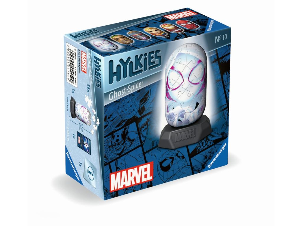 Hylkies, to jsou sběratelské figurky ze 3D Puzzle. Vaši oblíbení hrdinové od MARVEL čekají na sestavení. Získejte všech 6 nových sběratelských figurek z kolekce MARVEL - Captain Marvel, Iron Man, Spider-Man, Ghost Spider, Groot, Star Lord! MALÍ HYLKIES, VELKÁ SBĚRATELSKÁ ZÁBAVA. Kvalitní, plastové puzzle s technologií Easyclick. Bez nutnosti lepení!Doplňkové parametry