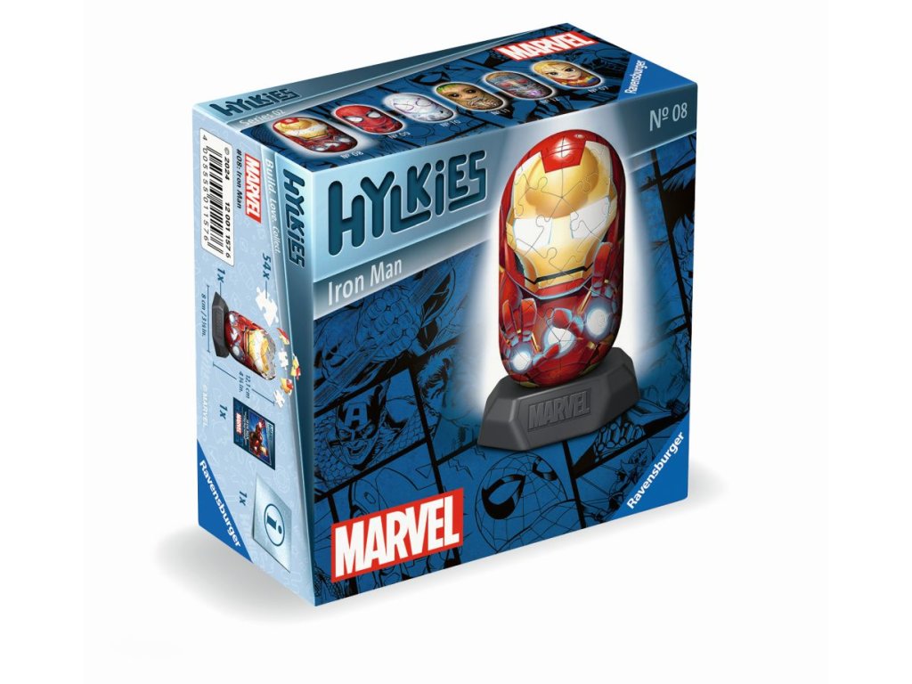 Hylkies, to jsou sběratelské figurky ze 3D Puzzle. Vaši oblíbení hrdinové od MARVEL čekají na sestavení. Získejte všech 6 nových sběratelských figurek z kolekce MARVEL - Captain Marvel, Iron Man, Spider-Man, Ghost Spider, Groot, Star Lord! MALÍ HYLKIES, VELKÁ SBĚRATELSKÁ ZÁBAVA. Kvalitní, plastové puzzle s technologií Easyclick. Bez nutnosti lepení!Doplňkové parametry