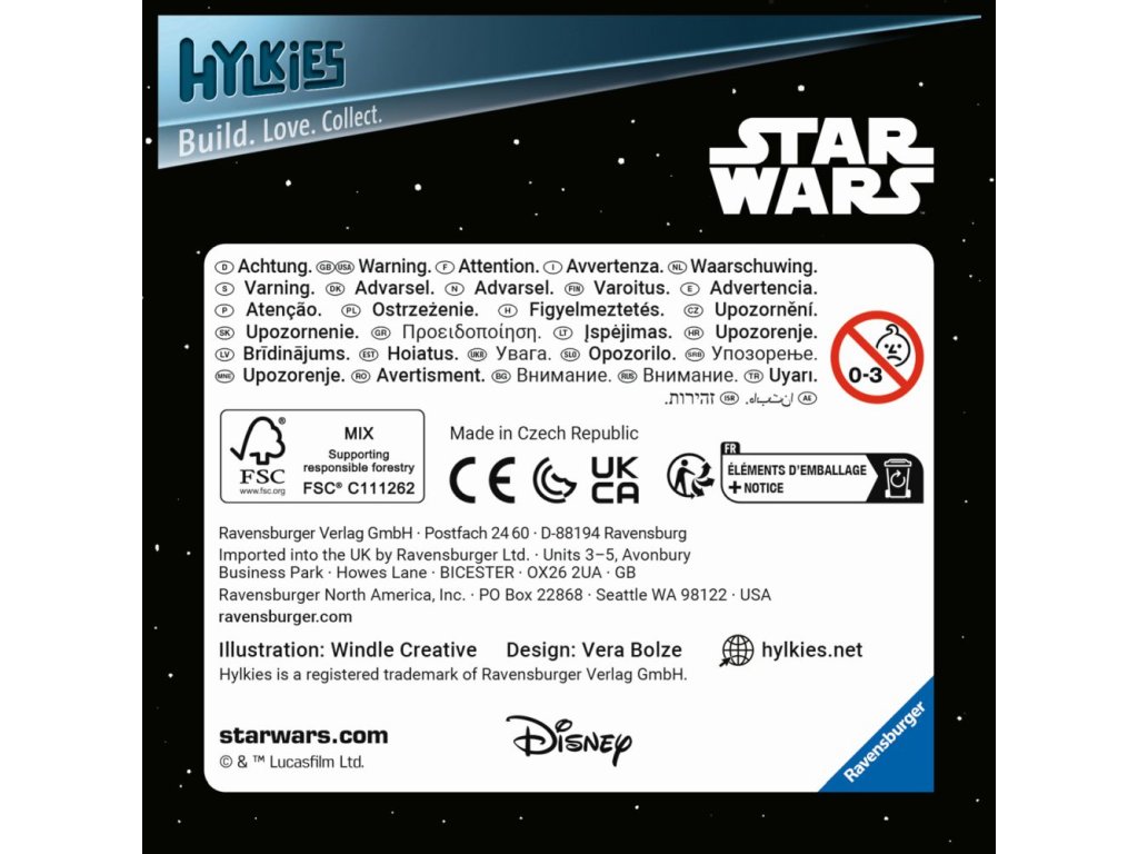Hylkies, to jsou sběratelské figurky ze 3D Puzzle. Vaši oblíbení hrdinové ze STAR WARS čekají na sestavení. Získejte všech 6 nových sběratelských figurek z původní trilogie Star Wars - Dart Vader, Luke Skywalker, Princezna Leia, Obi-Wan Kenobi, Chewbacca, Stormtrooper! MALÍ HYLKIES, VELKÁ SBĚRATELSKÁ ZÁBAVA. Kvalitní, plastové puzzle s technologií Easyclick. Bez nutnosti lepení!Doplňkové parametry