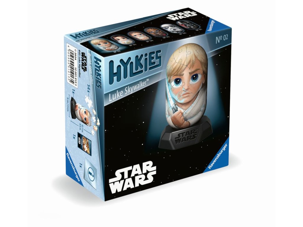 Hylkies, to jsou sběratelské figurky ze 3D Puzzle. Vaši oblíbení hrdinové ze STAR WARS čekají na sestavení. Získejte všech 6 nových sběratelských figurek z původní trilogie Star Wars - Dart Vader, Luke Skywalker, Princezna Leia, Obi-Wan Kenobi, Chewbacca, Stormtrooper! MALÍ HYLKIES, VELKÁ SBĚRATELSKÁ ZÁBAVA. Kvalitní, plastové puzzle s technologií Easyclick. Bez nutnosti lepení!Doplňkové parametry