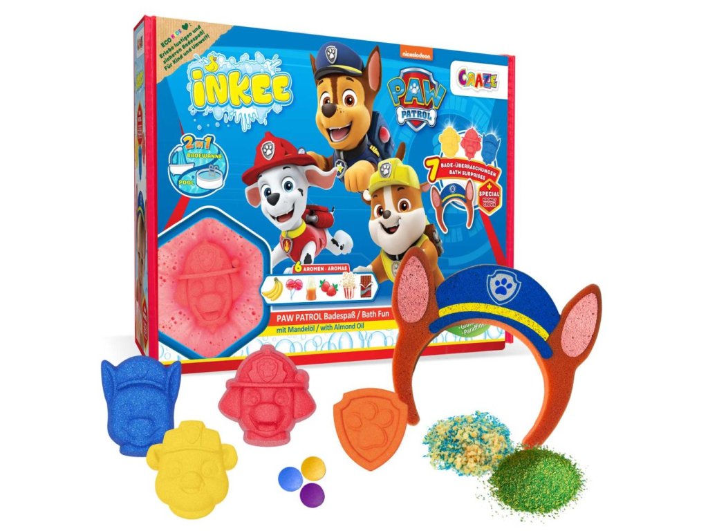 Tento speciální dárkový box INKEE - Paw Patrol je skutečnou lahůdkou pro všechny fanoušky Tlapkové patroly, kteří milují relaxační a barevné koupání. Krabička obsahuje 8 jedinečných předmětů, včetně 4 různých bomb do koupele, prachu do koupele, třaskavé soli, kapek do koupele a roztomilého doplňku.Dárková krabička INKEE - Paw Patrol nabízí širokou škálu efektů, včetně plovoucích koupelových bomb, bublajících koupelových bomb, pěnivého koupelového prachu a praskající soli. Přiložená houbová korunka poskytuje další zábavu při koupání.Tato krabička obsahuje přípravky, které nabízejí nejen pestrou paletu barev, ale jsou také obohaceny jojobovým olejem, který udržuje pokožku jemnou a vláčnou. Každý přípravek byl pečlivě vyvinut tak, aby poskytoval jedinečný zážitek z koupele.Doplňkové parametry