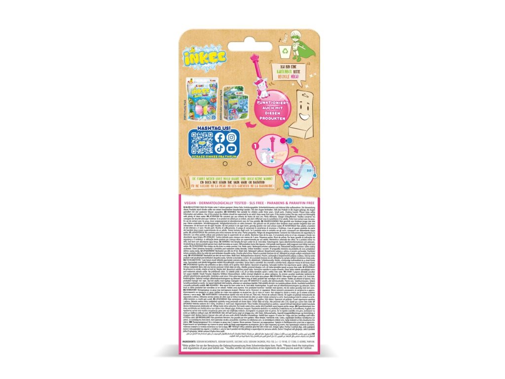 Speciální kouzelná hůlka ve tvaru Jednorožce. Umístěním šumivé kapky do jednorožce a ponořením do vody si dítě může hrát ve vaně a pouštět do vody barevnou stopu. Včetně 7 kapek do koupele x3g (2x purpurová, 3x žlutá, 2x modrá). Hůlka Balená v otevřené kartonové krabici. Kapky s vůní jahody. Se 3 barvami můžete namíchat až 7 různých barev. Dokážete vytvořit tyto barvy? Oranžová, zelená, červená a fialová?Doplňkové parametry