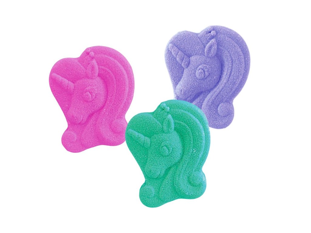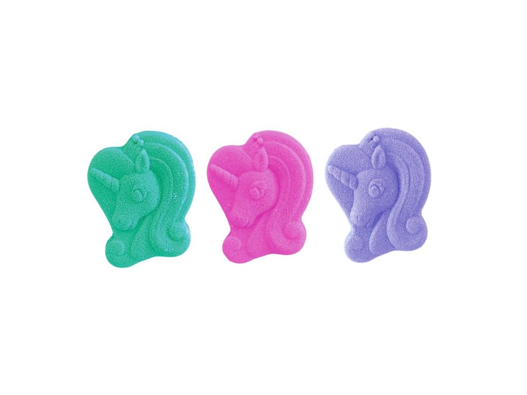 Balení bomby do koupele (3 x 15 g) s tvarem podkovy jednorožce Galupy. Součástí balení jsou 3 různé barvy (růžová, fialová a modrozelená). S vůní karamelového dortu.Doplňkové parametry
