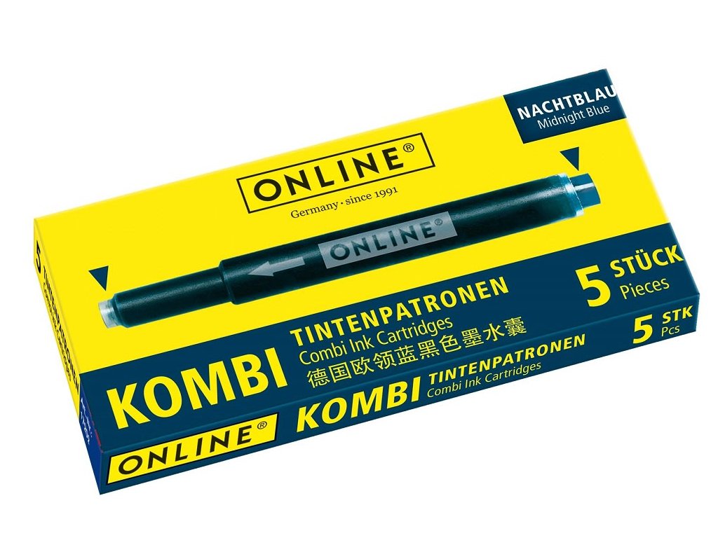 Online kombinované kazety mají nepřetržitý tok inkoustu. Průsvitné tělo umožňuje kontrolu hladiny inkoustu. Nabízí funkci rychlého schnutí a stálost. Je kompatibilní s téměř všemi plnicími pery. Díky hustému a vysoce kvalitnímu inkoustu poskytuje vynikající zážitek z psaní. ONLINE kazety jsou testovány a prezentovány jako výsledek bezkonkurenční německé kvality a řemeslného zpracování. Kód: 17056EAN: 4014421170569Výrobce: ONLINEDoplňkové parametry
