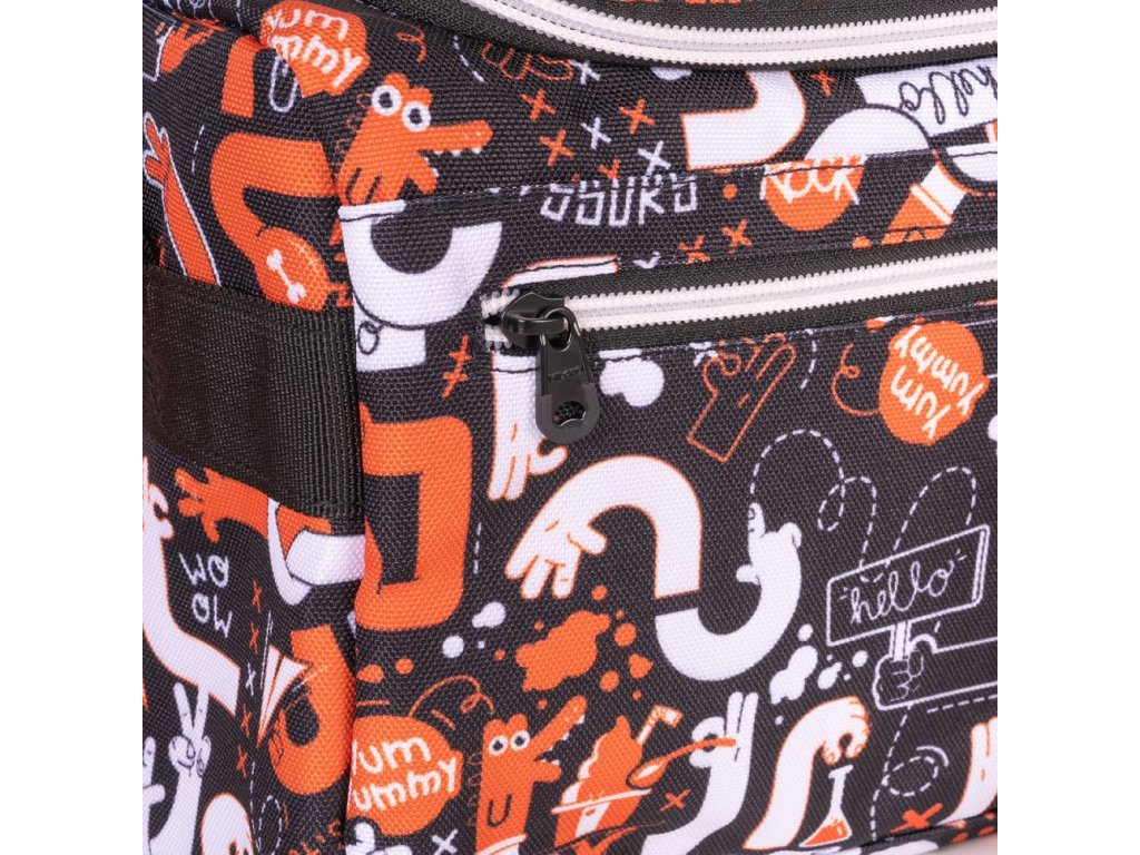 Nastavitelný a odnímatelný popruh a horní rukojeť.