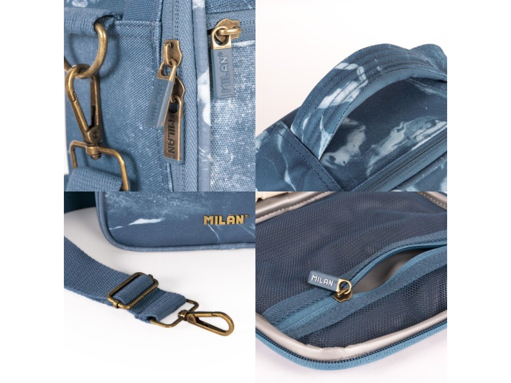 Nastaviteľný a odnímateľný popruh a horná rukoväť.