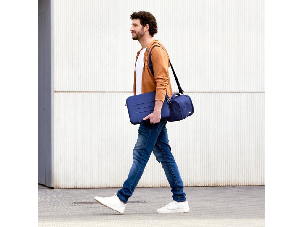 Nastavitelný a odnímatelný popruh a horní rukojeť.