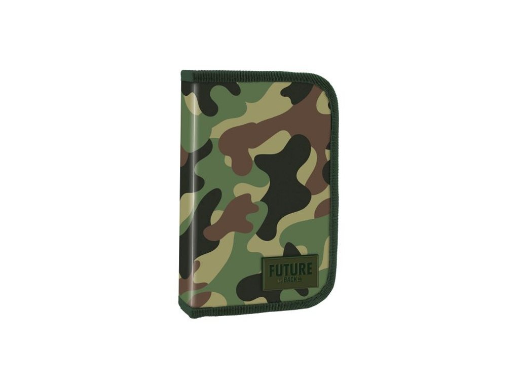 Jednopatrový penál neplněný - bez výbavy - s motivem army, nadčasový camo vzor je stejně univerzální jako černá. Dvě klapky uzavřené zipem, přehledný, více než 26 gumových úchytů na pastelky a tužky, dvě fóliové přihrádky např. na rozvrh hodin, rozměry složeného penálu: cca 20,5 x 13,5 x 4,4 cm, rozložený : cca 54 x 20,5 cm. Penál je vyroben z vysoce kvalitních materiálů - 100% polyester, pevná látka.Doplňkové parametry