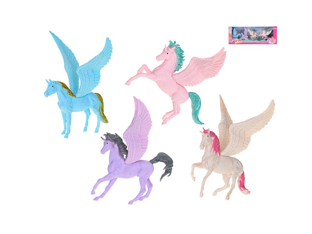 Čtyři jednorožci v krásných pastelových barvách v jednom balení. Materiál: plast Vhodné pro děti od 3 let.Doplňkové parametry