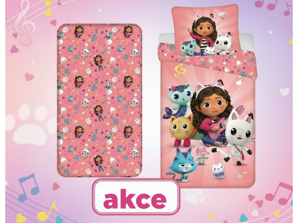 Přeneste své dítě přímo do kouzelného světa Gábi a jejích kočičích kamarádů! Toto nádherné napínací prostěradlo Jerry Fabrics s motivem z oblíbeného seriálu Gabby´s Dollhouse promění každou postel v místo plné snů a dobrodružství.