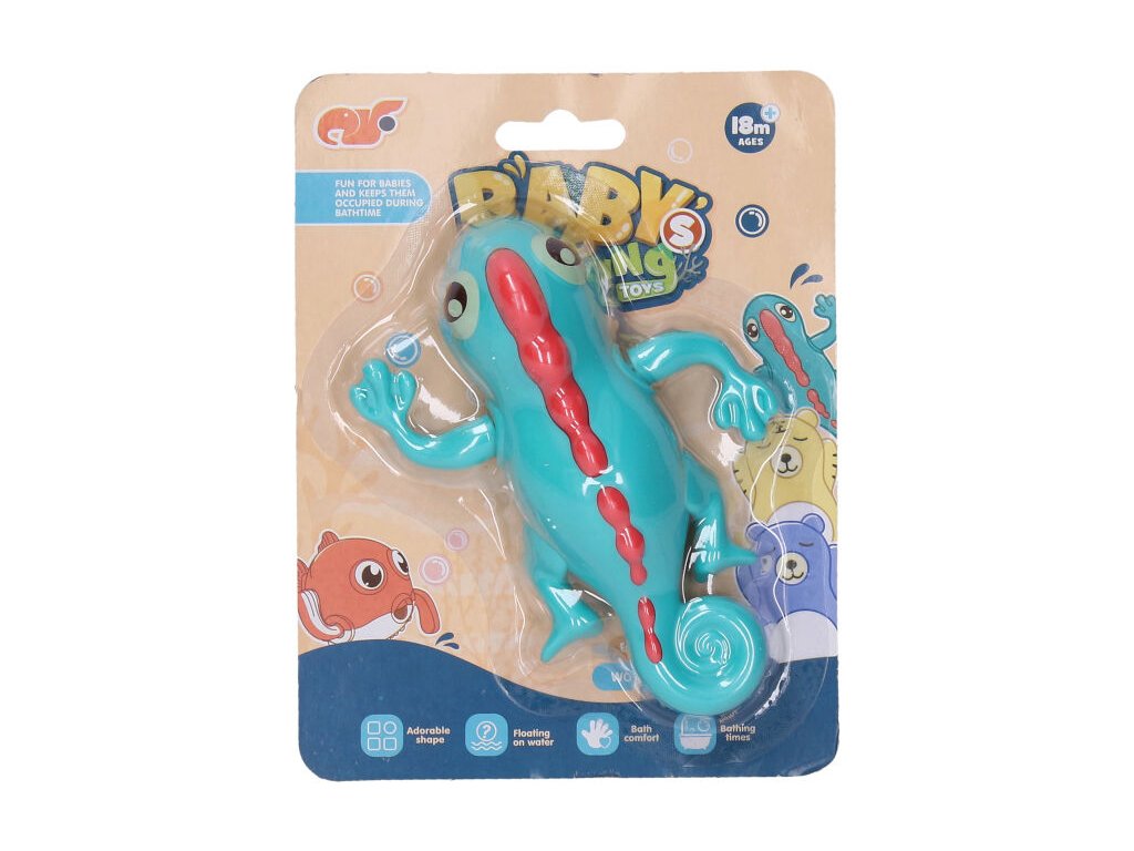 Ještěrka natahovací do vany. Rozměry 14x10x5 cm. 3 varianty - modrá, červená, žlutá. Doporučený věk: 18m+. DO OBJEDNÁVKY UVEĎTE POŽADOVANOU BARVU.Doplňkové parametry