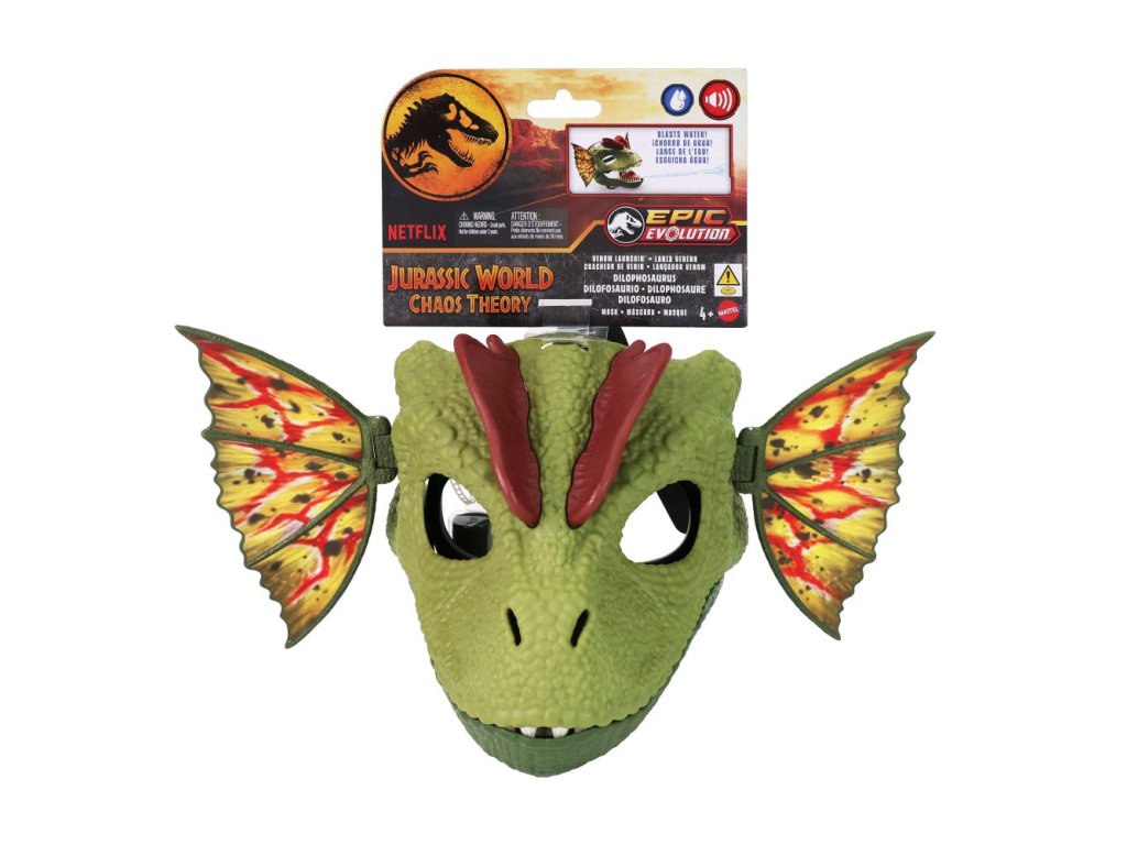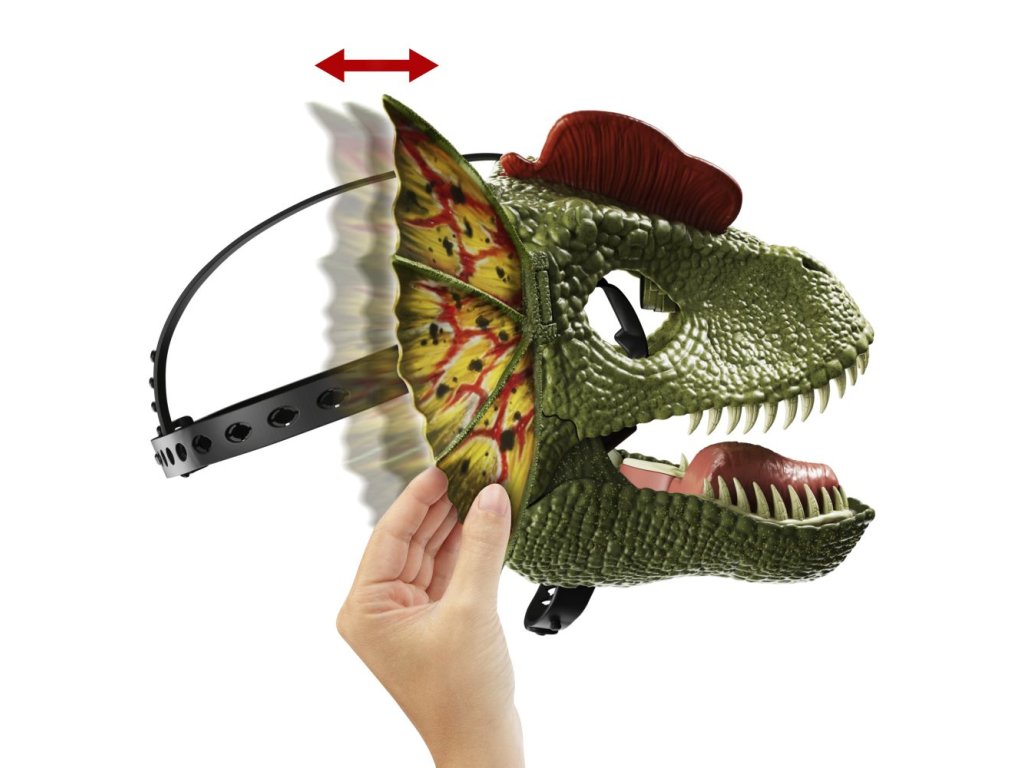 Dilophosaurus maska na obličej jistě nadchne každého fanouška Jurského světa. Otevřením čelisti se aktivuje stříkání vody. Otevřená čelist také spustí řev a skřehotání spolu s vystavením děsivě vypadajících zubů. Ručně si nastavte ikonický límec dilophosaura, abyste získali charakteristický vzhled dinosaura přímo z filmů.Doplňkové parametry
