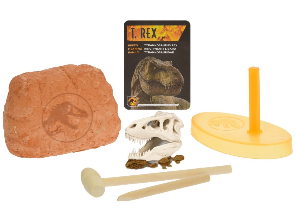 Jurský svět sada pro tesání dinosauří lebky s podstavcem v krabičce