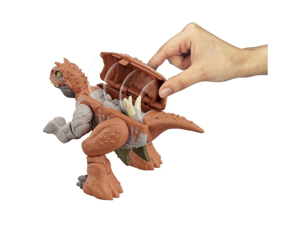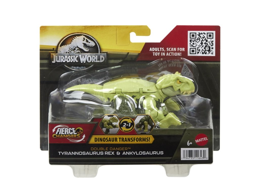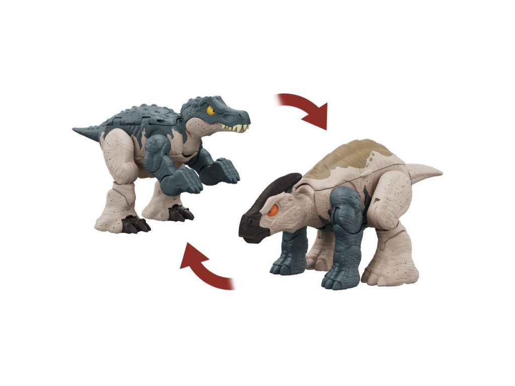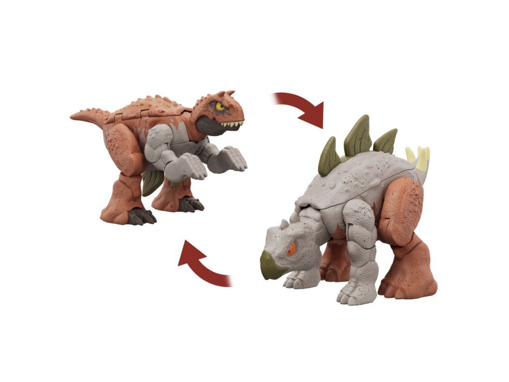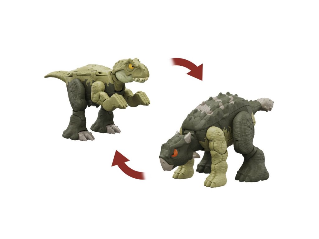Připravte se na velké vzrušení a dobrodružství s Jurským světem! Tyto figurky posouvají transformaci dinosauřích hraček o krok dál, protože býložravci se mění na masožravce a zpět v 10 snadných krocích! V této řadě mohou děti najít 4 různé figurky dinosaurů o rozměrech přibližně 17 na 12 cm. Tyrannosaurus rex se promění s Ankylosaurem ve 2 různých dekorech. Carnotaurus se promění se Stegosaurem a Baryonyx s Parasoralofem. V podobě každé dinosauří figurky nechybí charakteristické znaky jednotlivých druhů dinosaurů. Skvělá transformující se hračka pro děti od 6 let. Každý se prodává samostatně v závislosti na dostupnosti. Barvy a vzhled výrobku se mohou lišit.Doplňkové parametry