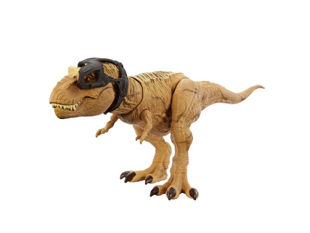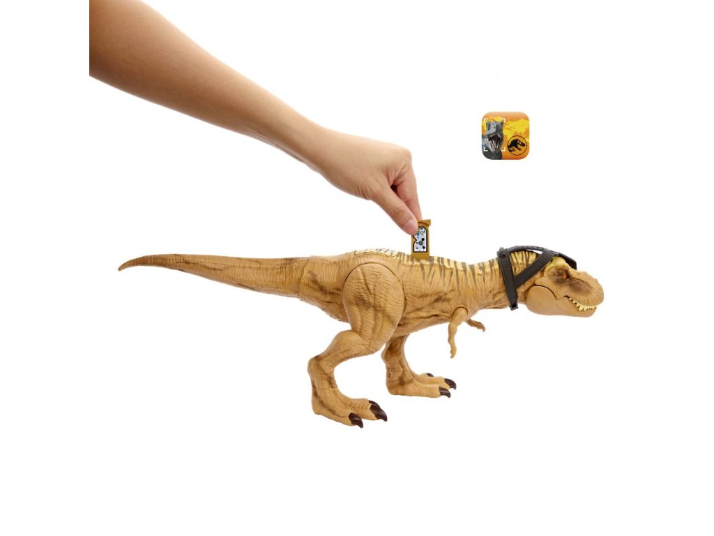Tato figurka dinosaura T-Rex na lovu se zvuky z filmu Jurský svět má novou útočnou funkci. Po stisknutí tlačítka T-Rex otevře tlamu a otočí hlavu na stranu za doprovodu dinosauřího řevu. Figurka o rozměrech přibližně 48 cm na délku a 17 cm na výšku a v provedení pouštního biomu je vybavena sportovním odnímatelným sledovacím zařízením, které umožňuje lépe vidět v terénu. Rozšířená digitální hra je dostupná naskenováním skrytého DNA tagu ve vylepšené aplikaci Jurassic World Facts. Barvy a vzhled výrobku se mohou lišit.Doplňkové parametry