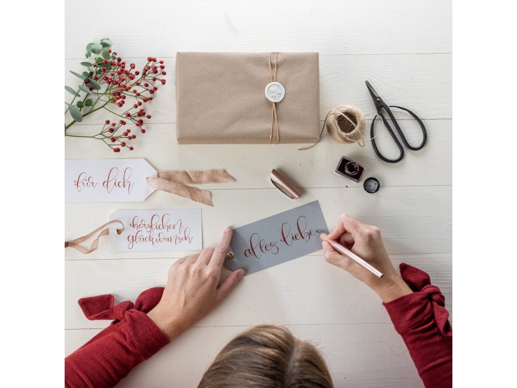 Darčeková kaligrafická súprava v dvoch atraktívnych pastelových farbách obsahuje kaligrafické pero s hrotom 1,1 mm, náhradné hrotové časti v šírkach 1,5 a 1,8 mm a balenie 6 ks atramentových bombiček vo farbe pera.Doplňkové parametry