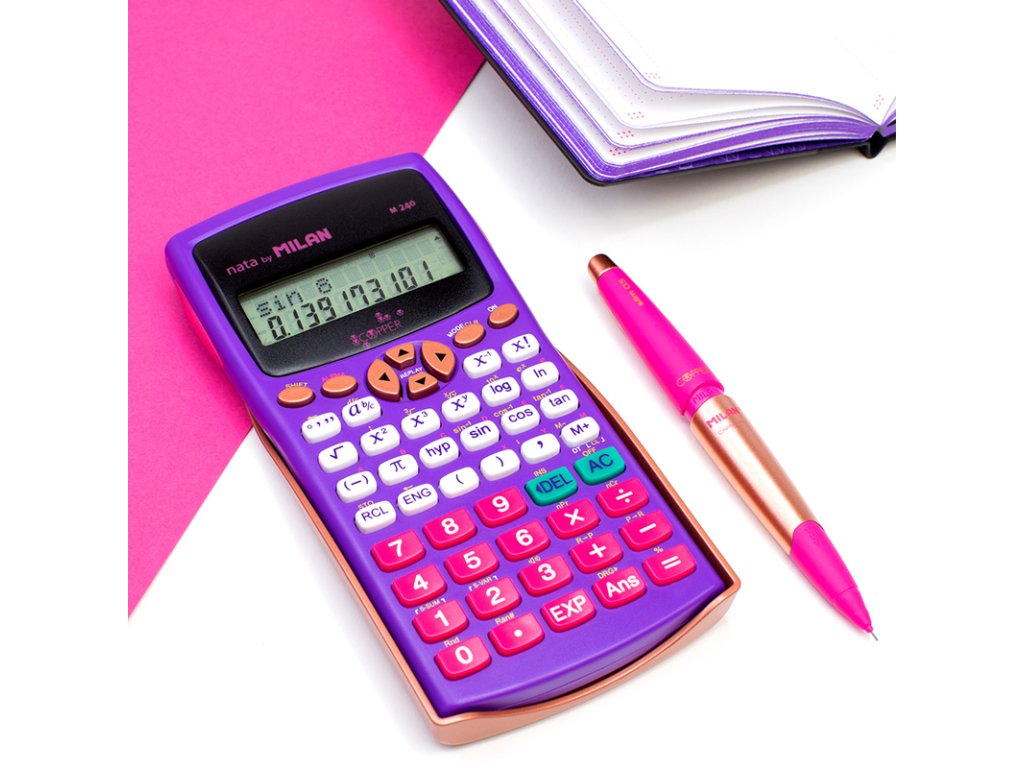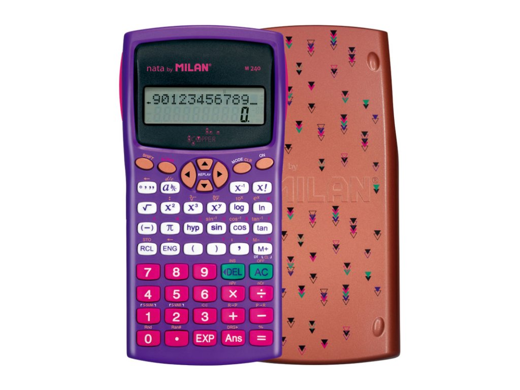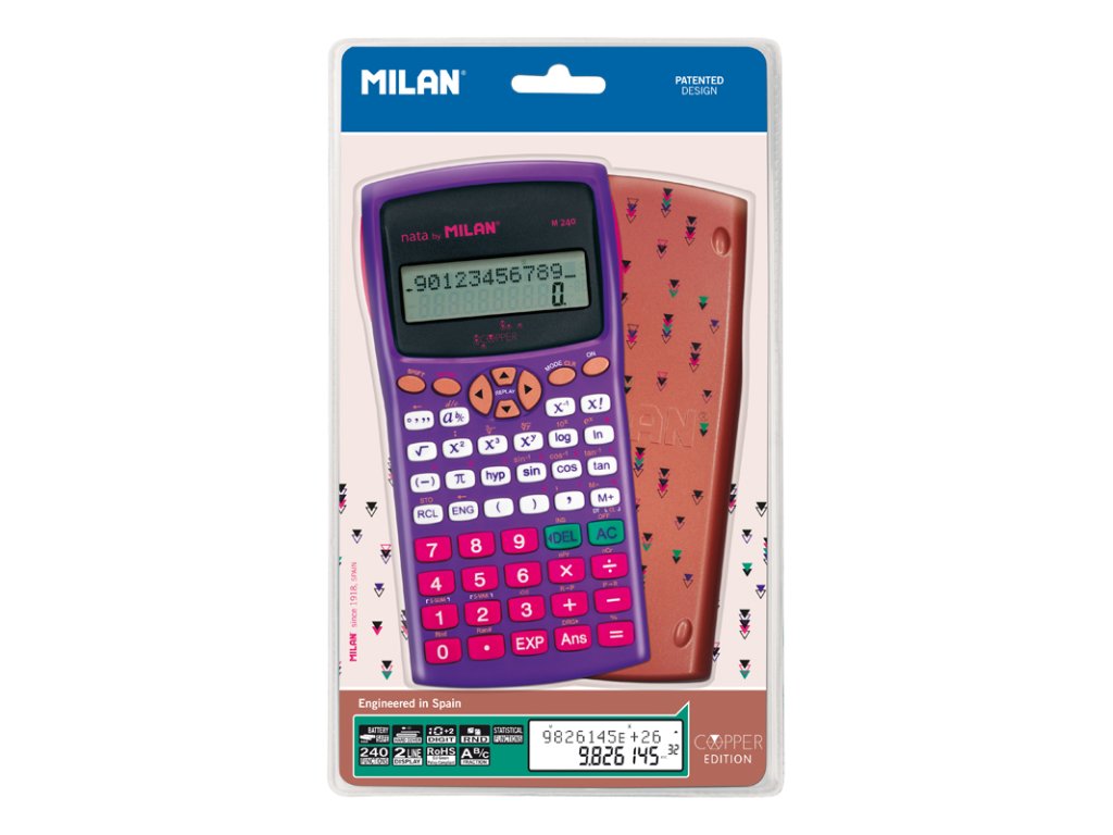 Vědecká kalkulačka MILAN s 2-řádkovým displejem, 10+2 místt. Napájaní zabazpečuje 2x AAA batéria. Integrál, trigornometrické funkce, logaritmy. Součástí balení je ochranný kryt. Rozměry 167x84x19 mm. Kalkulačka má 240 vědeckých funkcí jako např. trigonomeDoplňkové parametry