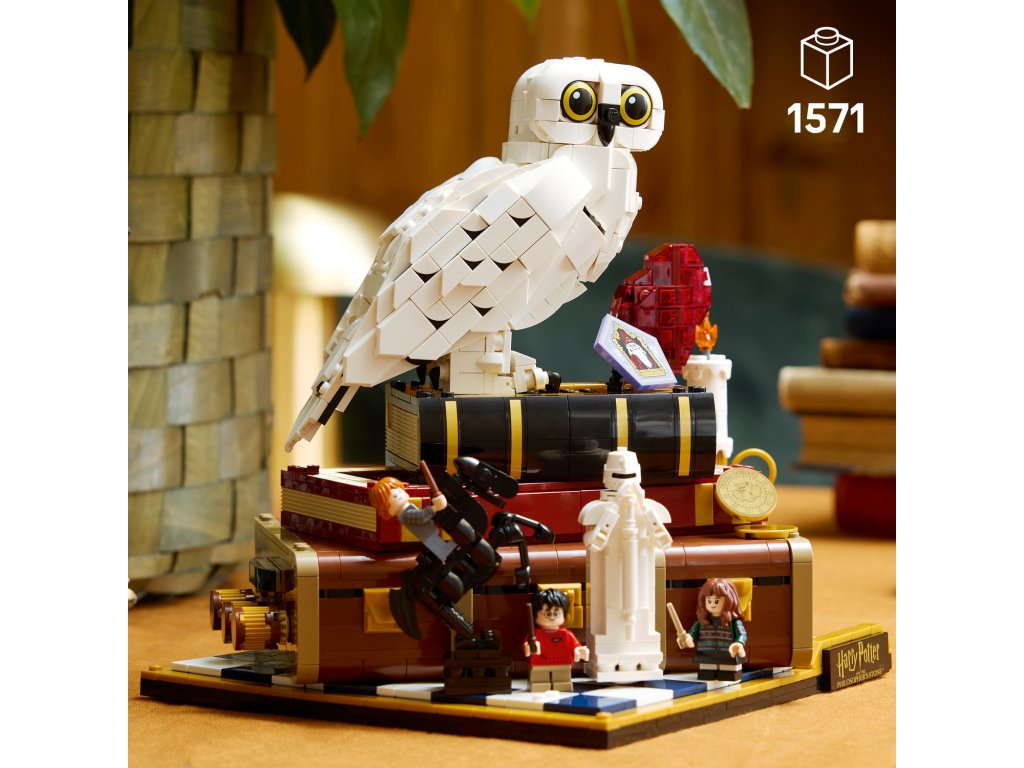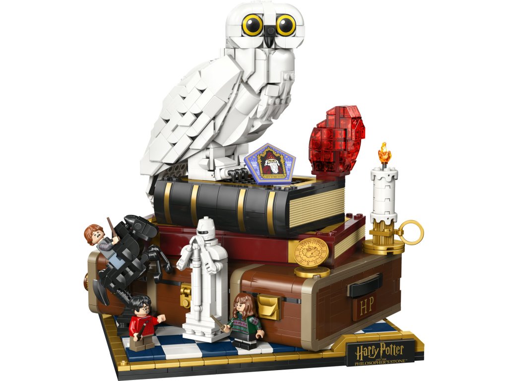 Postavte si nostalgický kousek na motivy filmu Harry Potter a Kámen mudrců se stavebnicí Kámen mudrců – sběratelská edice (76466) k 25. výročí řady LEGO® Harry Potter™. Tato sběratelská stavebnice představuje skvělý kreativní dárek pro dospělé fanoušky Harryho Pottera. Obsahuje zábavné funkce, ikonické postavy a předměty, a k tomu navíc klasické scény v mikroměřítku, se kterými si připomenete kouzelné okamžiky. Postavte si první figurku LEGO Hedviky, sovice sněžné se složenými křídly, a vystavte si ji vedle kamene mudrců a na kufříku Harryho Pottera. Přidejte tři minifigurky LEGO Harry Potter – Harryho Pottera, Hermionu Grangerovou a Rona Weasleyho – a řadu předmětů, mezi které patří čokoládová žabka a kouzelnické šachy. Otočte třemi kolečky a otočte hlavou Hedviky, přesuňte královnu na kouzelnických šachách a odejměte boční část Harryho kufru, která ukrývá scénu s útokem horského trolla v koupelně. Další mikromodely zahrnují Bradavický expres a pět zkoušek, které musí Harry podstoupit, aby se dostal ke Kameni mudrců. Stavebnice obsahuje 1 571 dílků.Doplňkové parametry