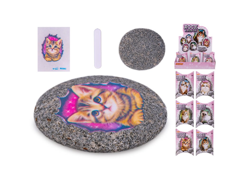 Kamínek se samolepkou kočičky, 6druhů, v krabičce
